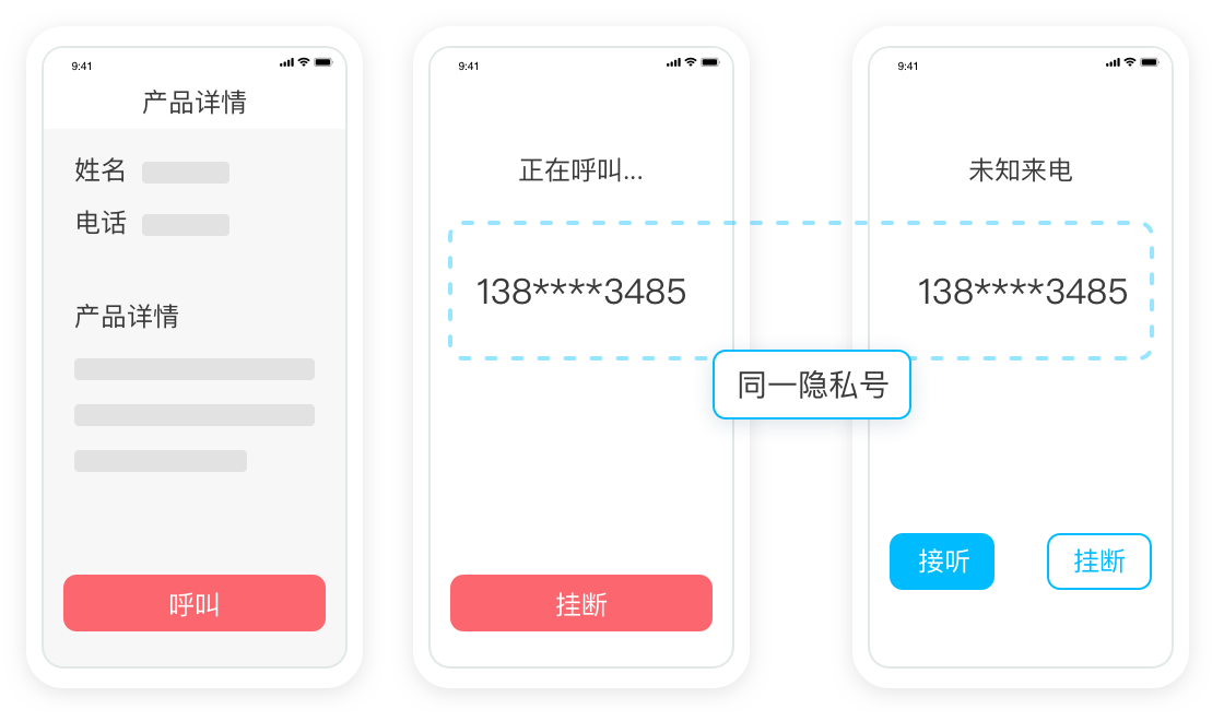 撥打隱私號可接通主被叫綁定的真實號碼,用戶進行語音通話的通話感知與普通通話無異。